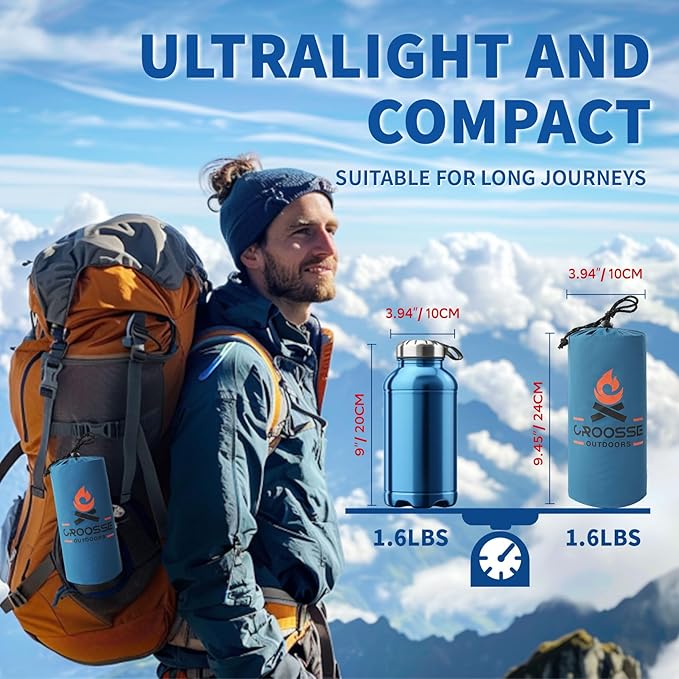 - PORTABLE CAMPING: Croosseoutdoors camp sleeping pad is lightweight and compact, ensuring easy portability and transportation, making it ideal for outdoor adventures. Once deflated, it can be rolled up and packaged into a compact size only measuring 9.45" x 3.94" x 3.94" (24cm x 10cm x 10cm) and weighing only 1.6 lbs (720g), equivalent to the weight of a water bottle. It comes with a storage bag, allowing you to carry it with you wherever you go