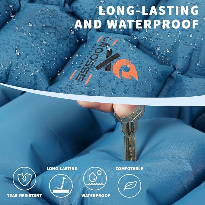 - VERSATILE AND CONVENIENT: This camping inflatable sleeping pad is an essential companion for camping, backpacking, hiking, bike tours and overnight stays in your car. Offering a generous luxurious sleep support, this ultralight sleeping pad ensures you'll rest comfortably no matter where your adventures take you. Make sure you're rested and rejuvenated after a day of outdoor adventure. Croosseoutdoors offers exceptional customer service, so please don't hesitate to reach out if you have any questions