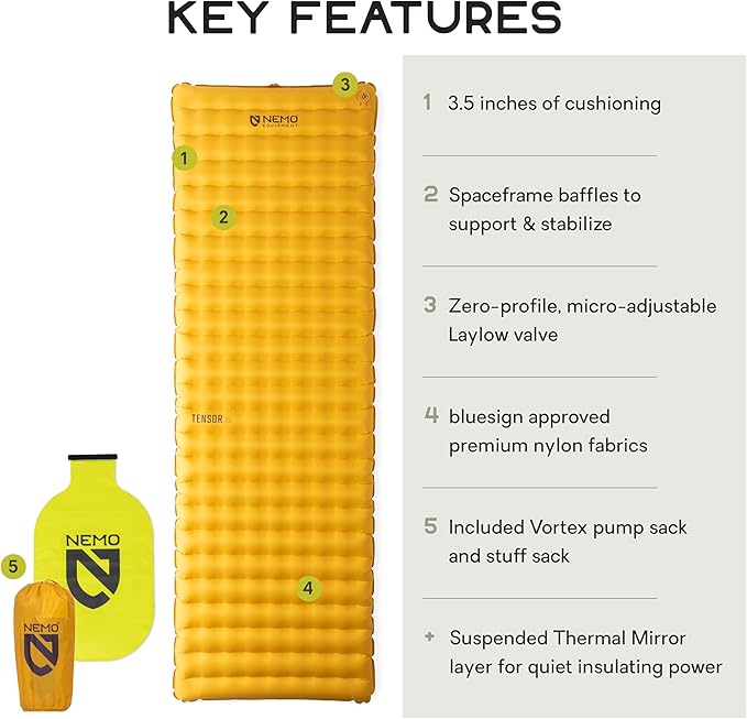 NEMO Equipment Tensor Trail Ultralight Insulated Sleeping Pad - Long Wide (76"x25") - Mango/Huckleberry