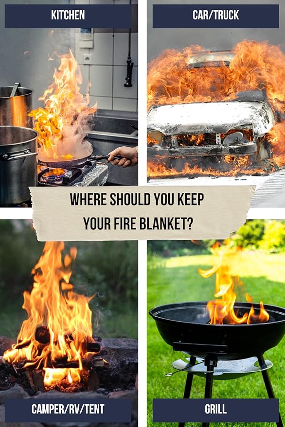 - Versatile Protection - Not just for kitchen mishaps, this fire suppression blanket is perfect for extinguishing grease fires, grill fires, and can also be used to wrap around a person in case of a fire emergency.
