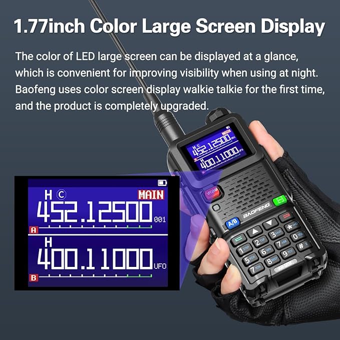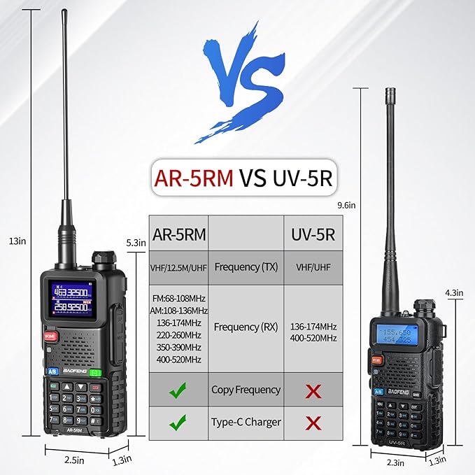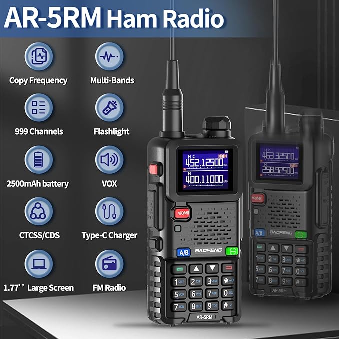- 🌴【Why You Choose Us】Larger screen, better colors, and good quality antenna. Compared to traditional Baofeng radio screens such as Baofeng UV-5R,BF-F8, UV-9R Plus /Pro,UV-9G,and Baofeng UV-82 etc,the AR-5RM has a larger screen to display channel information and power, giving you a better visual experience than typical portable ham radios.