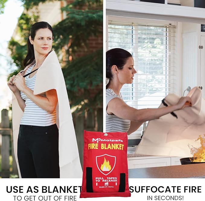 - 【Fire proof and resistant to high temperatures】An essential tool to aid in house fire prevention, extinguish heat alarming fast by shielding oxygen away from burning embers. An emergency fire blanket is a must have in your house fire safety kit and car survival kit for protection.