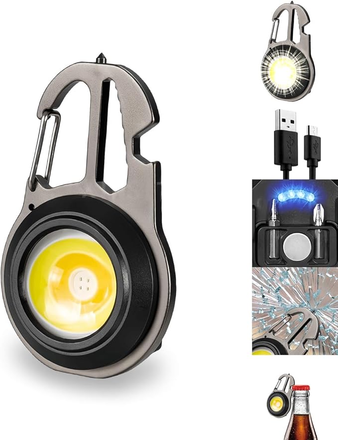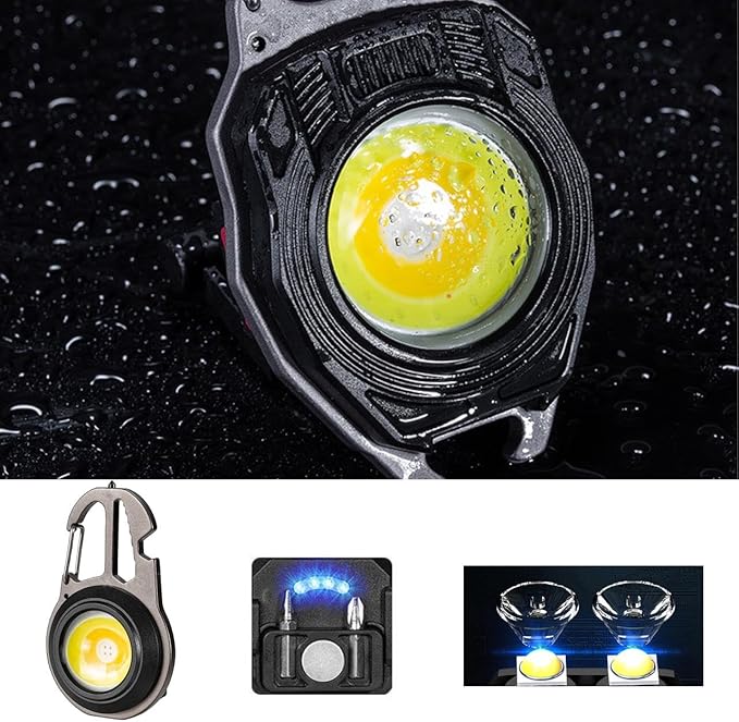 - Ultra-Bright COB Keychain Work Light: Emitting up to 800 lumens, our COB keychain flashlight provides a wide-angle, bright light. The large COB Technical LED functions as a work and emergency light.