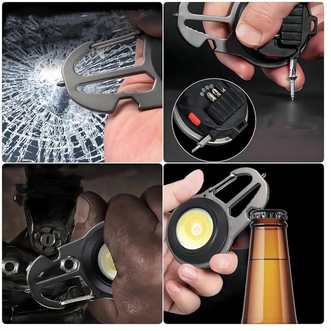 - Multifunctional Design: A bottle opener, small LED flashlight, and repair tool – this multifunctional keychain tool has it all. The built-in screwdrivers make it versatile for fishing, walking, hiking, camping, and emergency maintenance.