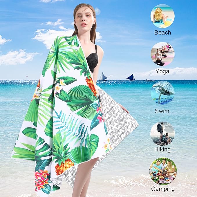 - 【Two Size Options】:Large size : 60"x32"- if you need something more compact. Ex-Large size : 72"x36" - easily cover you and your companion, letting you relax on a beach chair and sunbathe, enjoy the scenery of the sea. Soft to the touch and let your skin contact with it at ease. Enjoy leisurely time!