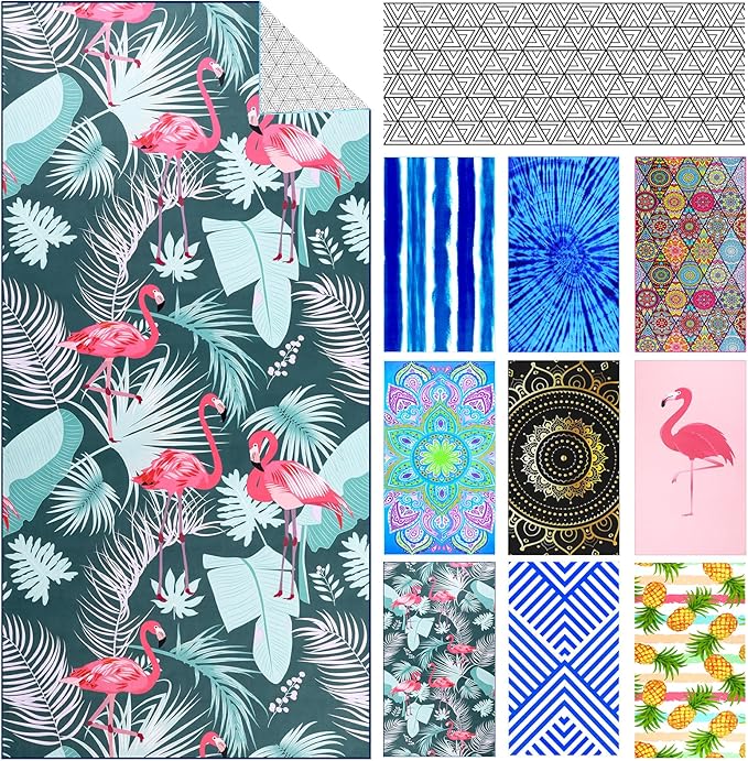 Genovega Microfiber Lightweight Thin Beach Towel Sandproof Compact Clearance Towels Quick Dry Sand Free No Sand Pool Swim Blanket Travel Essentials Accessories Vacation Women Men Adult Gift Flamingos