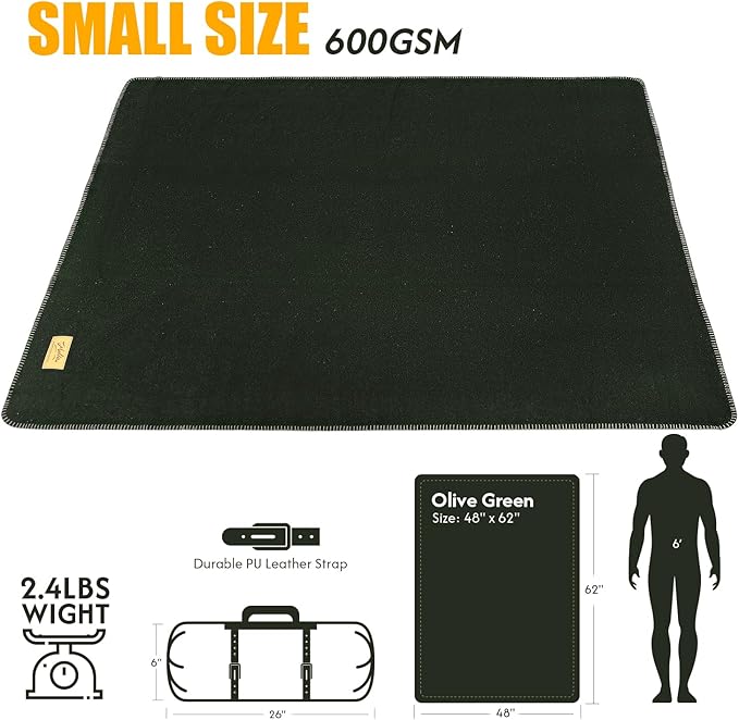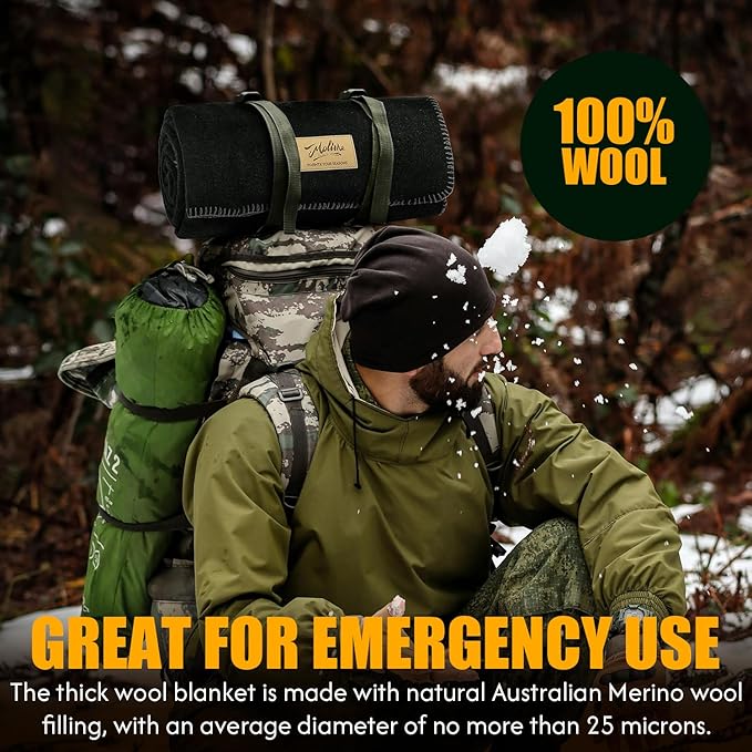 - INDOOR OR OUTDOOR - The large size (48"x 62") of the pure wool blanket keeps you and your friends warm and cozy during camping, tailgating parties, or outdoor concerts. It is also great for military surplus, camping, hiking, stargazing, backpacking, jungle expeditions, boating, fishing, hunting, or keeping in the car trunk as an emergency preparedness blanket.