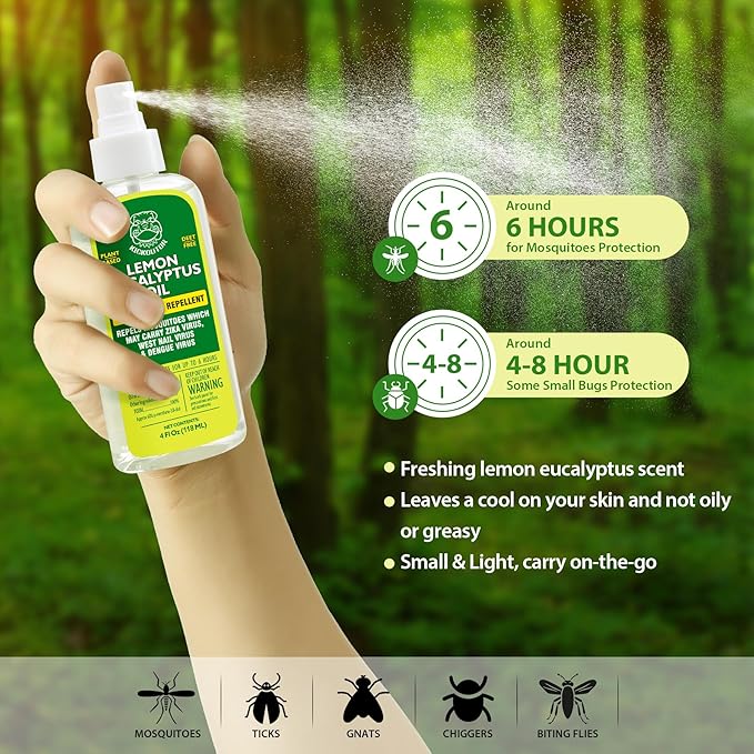 - STAY VIRUS RISKS AWAY:DEET free organic eucalyptus oil bug repellent spray can create a barrier against insects and mosquitoes which may transmit the West Nile and Chikungunya viruses etc. Enjoy natural power from the only plant-based repellent recommended by the CDC