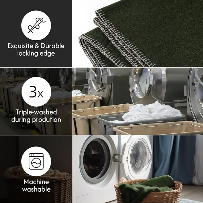 - SOFT AND SKIN-FRIENDLY - Our military wool blanket undergoes advanced wool carding process, making it thinner, more comfortable, and fluffy. It is not scratchy, stain-resistant, and can be used for a long time. The production process includes three high-temperature washes, significantly improving odor and softness.
