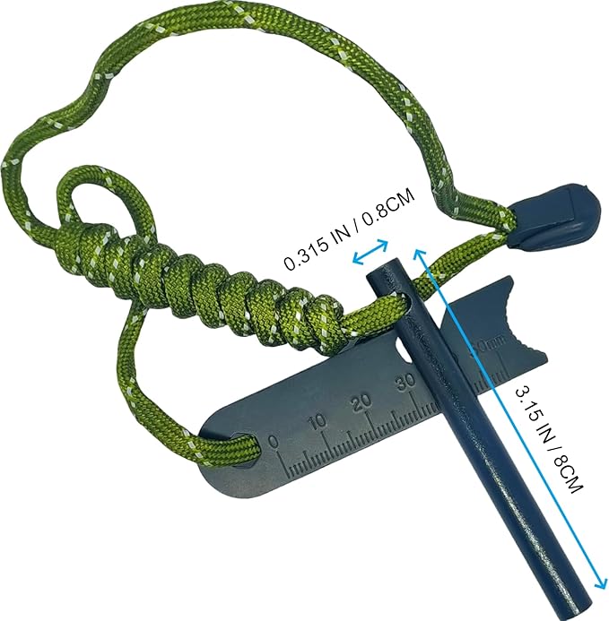 - Included Components : 5/16" Thick Ferro Rod with Multifunction Striker and Umbrella Rope