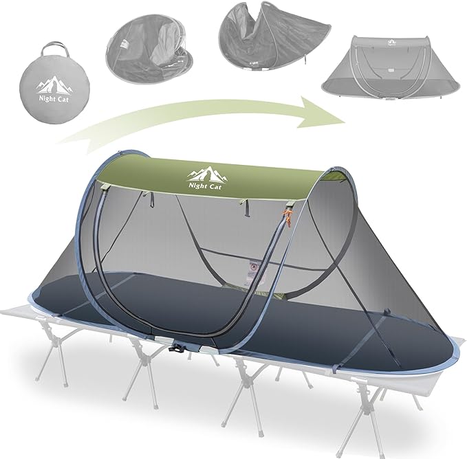 Night Cat Pop-up Mosquito Tent: 1 Person Camping Tent with Bug Screen Net Adults Kids Fits with Camping Cot (Exclueded)