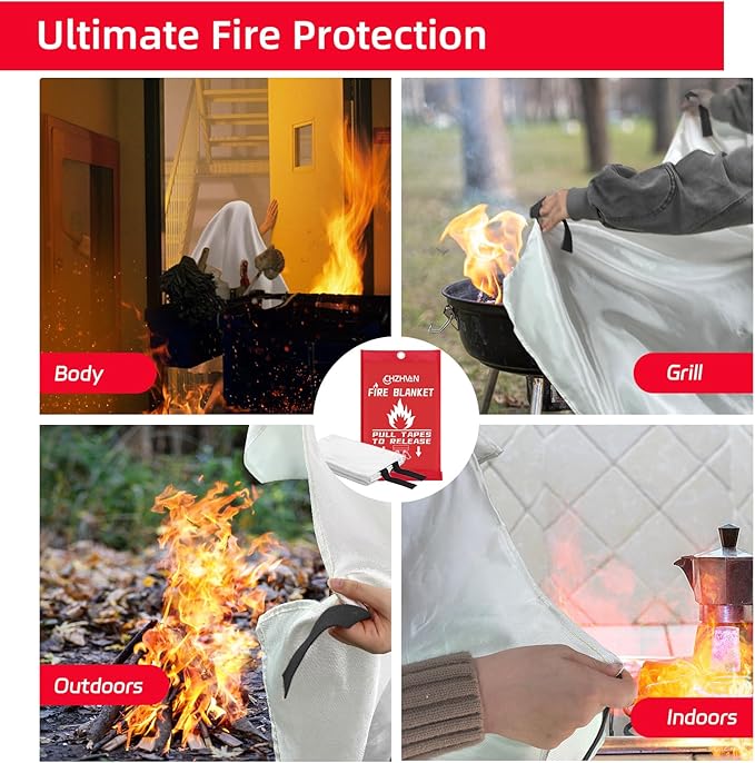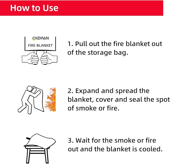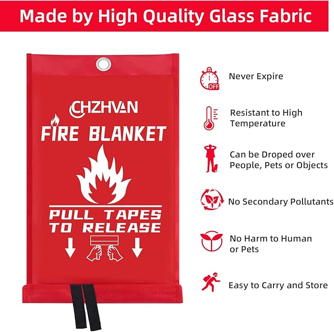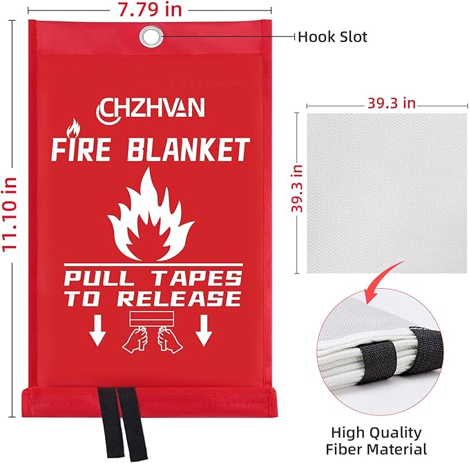 - ✅A Must Have in Every Kitchen & Home: CHZHVAN emergency fire blanket cuts off oxygen supply to flames, tackling liquid, grease, and various fire types. It is an essential home safety device for emergencies. Ideal for kitchen, fireplace, grill, car, office, camping and so on. As a emergency survival fire blanket, every family need it, but we hope you will never use it.