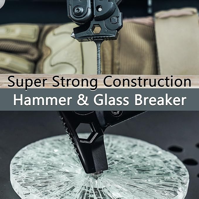 - 2. MUST-HAVE OUTDOOR SURVIVAL TOOLS: Our black stainless steel edc multitools pliers features a strong hammer, a fire starter, a glass or window breaker for emergency escapes and a high-pitched whistle. Ideal multi tools for men as a gift.