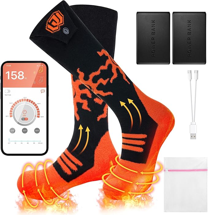 Heated Socks for Men Women with APP Control Rechargeable Electric Heating Socks Washable Foot Warmer for Winter Hunting Skiing Fishing Climbing Hiking 5000mAh Battery