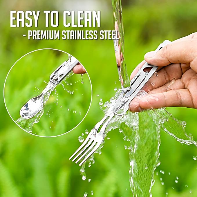 - Versatile Six-in-One Design: This utensil set boasts a six-in-one multifunctional design, including detachable forks, spoons, knives, and even a bottle opener. It fulfills all your outdoor dining needs in a single, convenient package.