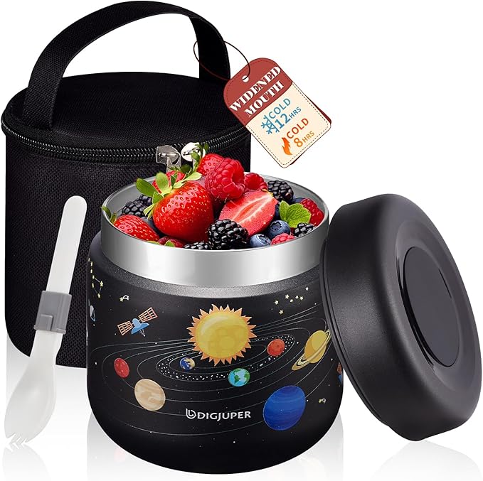 - UPGRADED SEALED RING & WATERPROOF LUNCH BAG: Double-layer silicone seal ring design ensures your thermo food containers are 360° LEAK-PROOF and lock in food freshness, and comes with a handy insulated bag, not only protects food jar during commute, but also extend food warm until your child opens it and eat with included food-grade folding spoon.