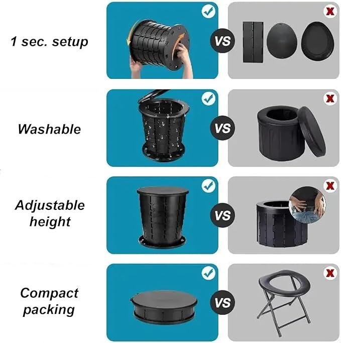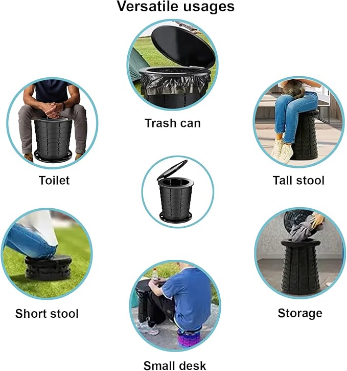 - VERSATILE USAGES: The camping toilets portable can be used as a camping potty, a trash can, a height adjustable stool and even a storage box.