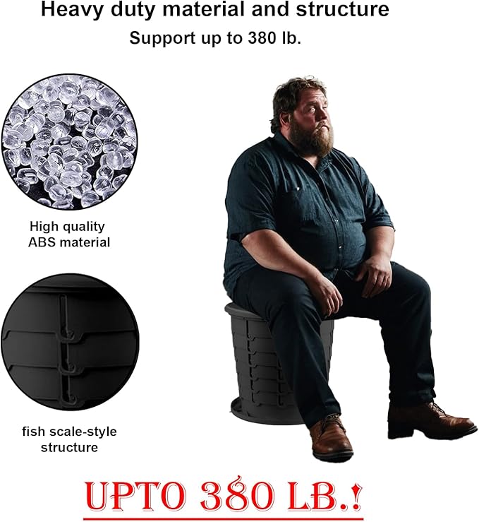 - HIGH QUALITY PORTABLE CAMPING TOILET: The outdoor toilet is made of high-quality ABS material with a fish scale-style structural design that is sturdy, durable, safe, and hygienic. It has a weight capacity of up to 400 pounds, suitable for both adults and children.