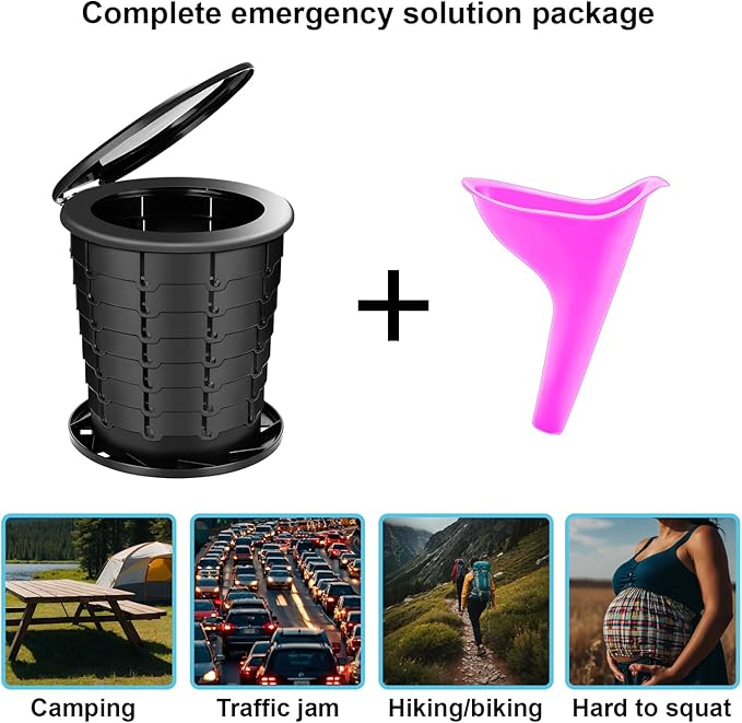 - FULL SET ROAD TRIP ESSENTIALS FOR YOUR POTTY NEEDS: The full package set contains not only a portable toilet for camping, but also a urinal for women ($4.99 extra value). Moreover, it also comes with a set of toilet/trash bags and a handy carry bag. You can use this portable bathroom set in the car, on the road or in the camp.