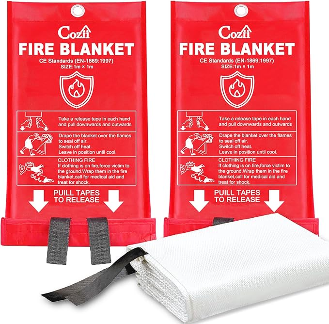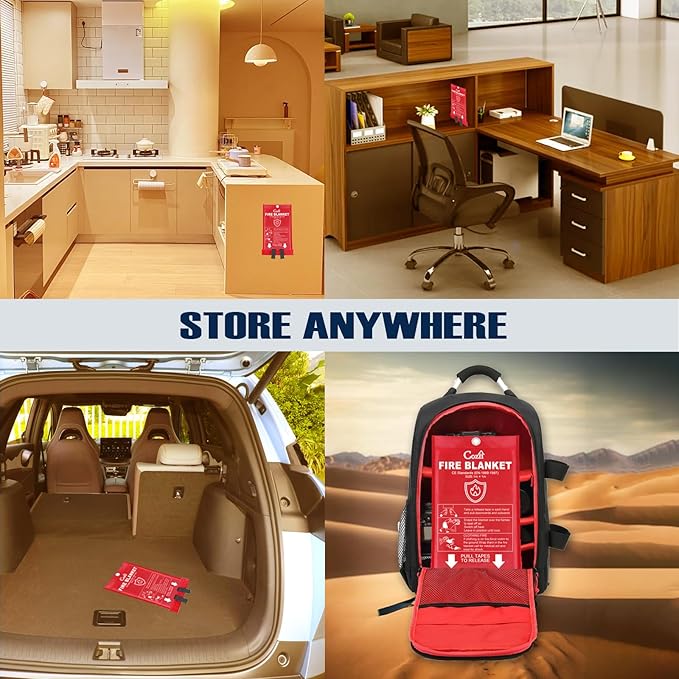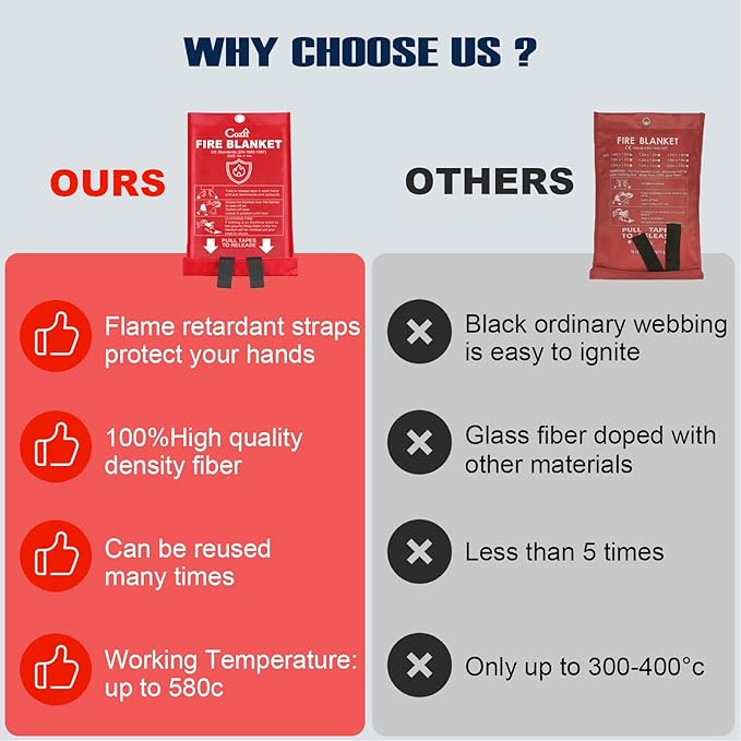 - FIRE SAFETY BLANKET: Complies with two established safety standards for fire blankets, CE (EN 1896:1997) and SGS (EN 1896:2019). Unlike regular fire extinguishers, it's easy to carry and store, convenient to use, Extinguish small fires quickly and easily with no mess, and suppressing fire spreading.