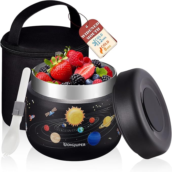 - UPGRADED SEALED RING & WATERPROOF LUNCH BAG: Double-layer silicone seal ring design ensures your thermo food containers are 360° LEAK-PROOF and lock in food freshness, and comes with a handy insulated bag, not only protects food jar during commute, but also extend food warm until your child opens it and eat with included food-grade folding spoon.