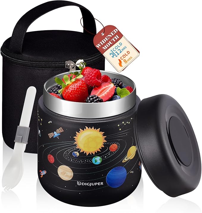 - UPGRADED SEALED RING & WATERPROOF LUNCH BAG: Double-layer silicone seal ring design ensures your thermo food containers are 360° LEAK-PROOF and lock in food freshness, and comes with a handy insulated bag, not only protects food jar during commute, but also extend food warm until your child opens it and eat with included food-grade folding spoon.