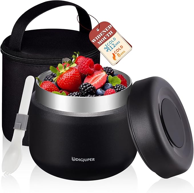 - UPGRADED SEALED RING & WATERPROOF LUNCH BAG: Double-layer silicone seal ring design ensures your thermo food containers are 360° LEAK-PROOF and lock in food freshness, and comes with a handy insulated bag, not only protects food jar during commute, but also extend food warm until your child opens it and eat with included food-grade folding spoon.