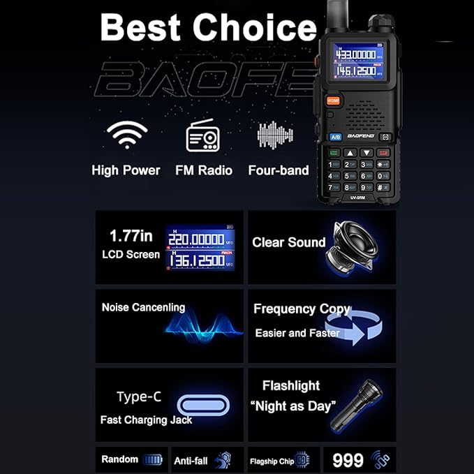 - Special Feature : 1.77inch LCD Screen, NOAA, High Power, USB-C Charging, Multi-Band