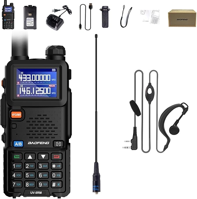 - BAOFENG UV-5RM two way radio is a reliable communication device designed for both outdoor enthusiasts and professionals. Enjoy long-range communication spanning 3-5 miles, ensuring connectivity in various environments, from camping and hiking to challenging work sites.