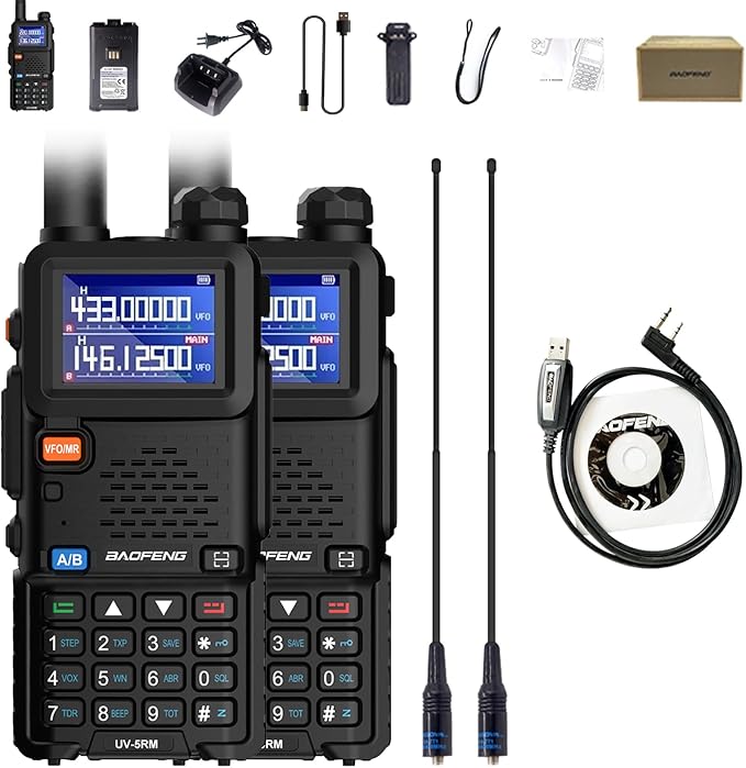 - BAOFENG UV-5RM two way radio is a reliable communication device designed for both outdoor enthusiasts and professionals. Enjoy long-range communication spanning 3-5 miles, ensuring connectivity in various environments, from camping and hiking to challenging work sites.