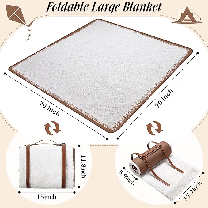 - Practical 2 in 1 Design: the unique 2 in 1 design enables our boho camping blanket to cater to multiple uses; The top layer with a boho tassel style, serves as a cozy blanket; Simultaneously, the brown bottom layer serves as a waterproof mat that is resistant to moisture and dirt, providing you with a comfortable outdoor experience; Besides, it is a nice photo background; Note: the upper fringe blanket need to be washed to get better using experience, both machine wash and hand wash