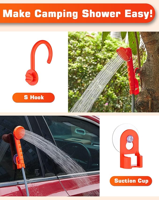 - Compact & Multipurpose Design : Portable and multifunctional, this camping shower kit is compact for easy storage and transportation. Included storage bag ensures convenient packing and drying