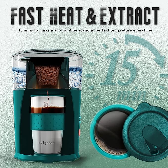 - Quick Brewing & Safe Using: Experience the fast heating technology of Avigator 12V car coffee maker, a piping-hot cup coffee can be brew within 15 minutes. What's more, the built-in auto shut-off feature guarantees your safety by turning off the coffee machine after each brew