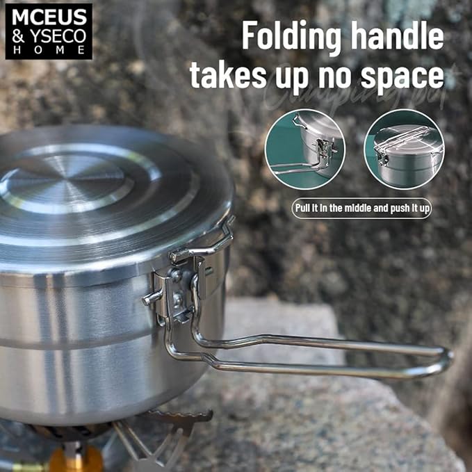 - All-in-1 package Save on Space: Head out on your next adventure without dealing with unnecessary bulk. All the nesting pots and pans set and accessories with folding handles, can nest into each other in the pot.