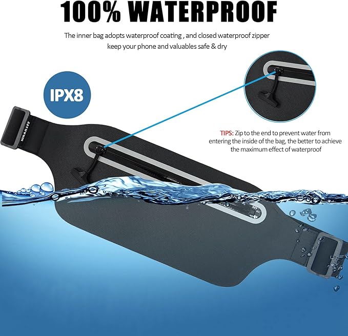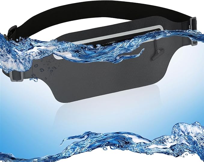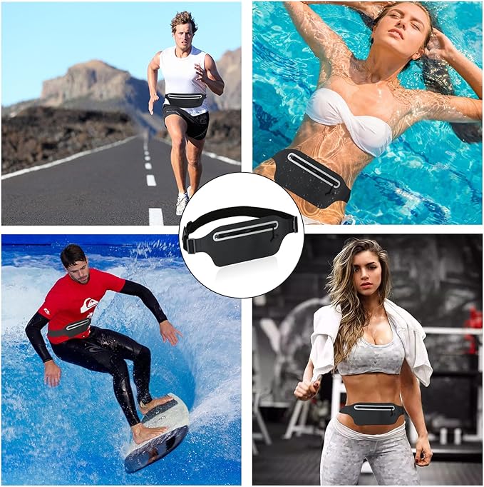 Waterproof Fanny Pack Women for Swimming Running Belt Bag Men Waist Bag Kids, Slim Hiking Waist Pack GYM Runners Exercise Workout Beach Kayaking Water Sports Dry Bags Cell Phone Pouch Black