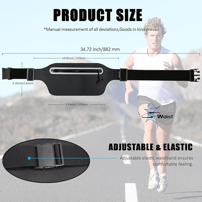 - 【Bounce-Free and Comfortable Designer Fanny Pack】This anti-slip designer belt bag which can make sure the belt will not bounce & chafing during activities.Stays in place,Working very well!This running waist belt/waistband made from lightweight(ultra light thin),soft skin-friendly and stretchable/elastic neoprene fabric with moisture wicking,quick drying,floating,water resistant,sweatpoof and extra breathable.Plus size belt bag extra long strap,running belt for men,running fanny pack women