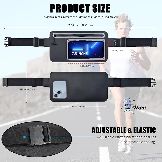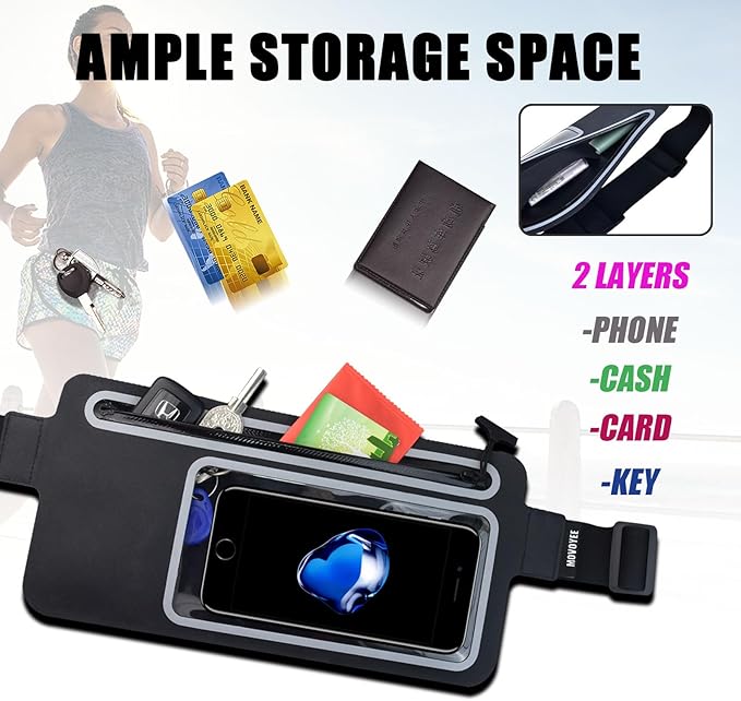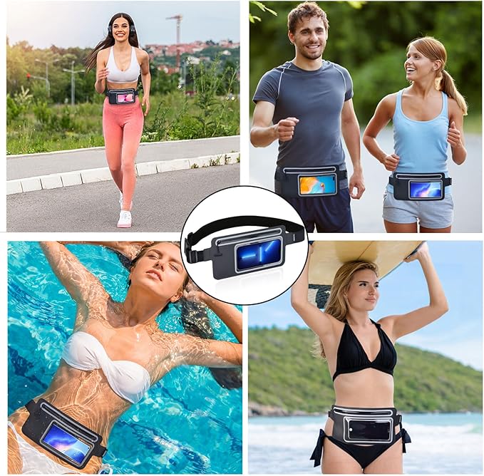 - đăExtra Large Fanny Pack Plus Size Belt Bag with Clear Window to Easily Touch the Screen&Take PhotosăOur large belt bag with upgraded plus storage zipper pocket&interlayer to carry cellphone equipment(fit smartphones screen up to 7.2 inches),keys,money,card,passport,accessories carrier vacation must hold.No worries about your valuables getting wet or lost.Waterproof waist pack for men,travel dry bags waterproof fanny pack women for swimming,waterproof running belt for phone fanny pack