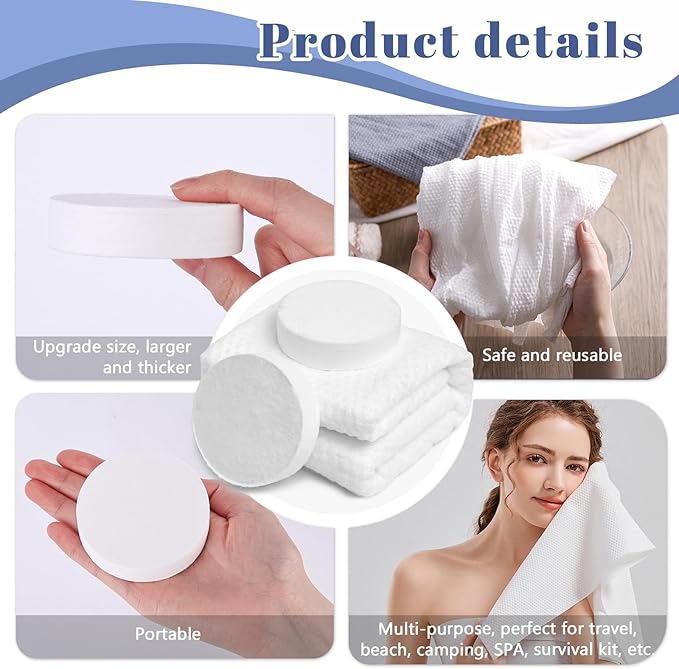 - Upgrade Size: Simply drop the small towel tablet into cold or warm water for a few seconds, the towel will instantly expand to a 55x27inch bath towel. Larger and thicker than similar products on the market, making it perfect for drying off after a shower or swim.