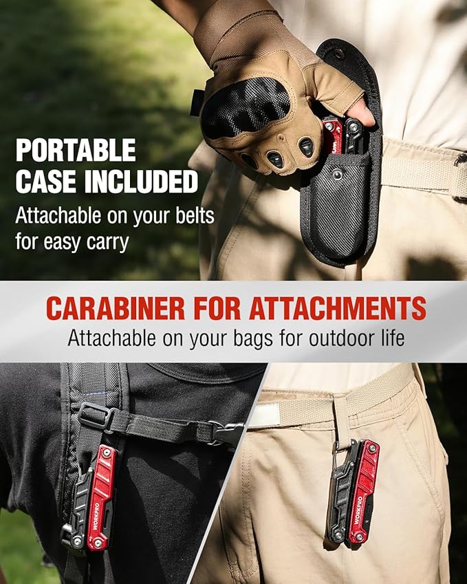 - Portable Sheath and Pocket Clip - When go outside for working, camping, or hiking, simply grab the pocket multitool and place it in the nylon sheath, which is attachable to your belt or bag. Or just easily attch the multi tools to your pocket.