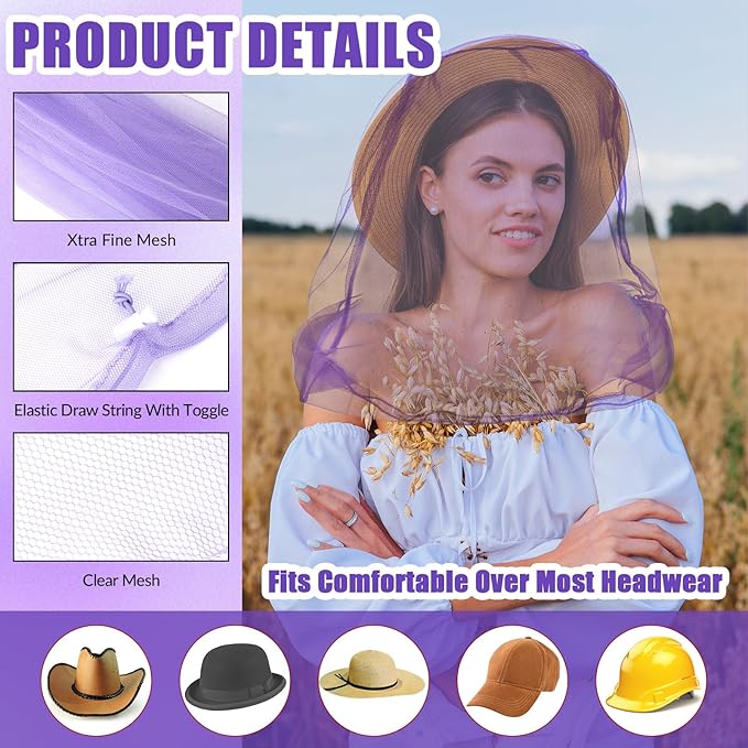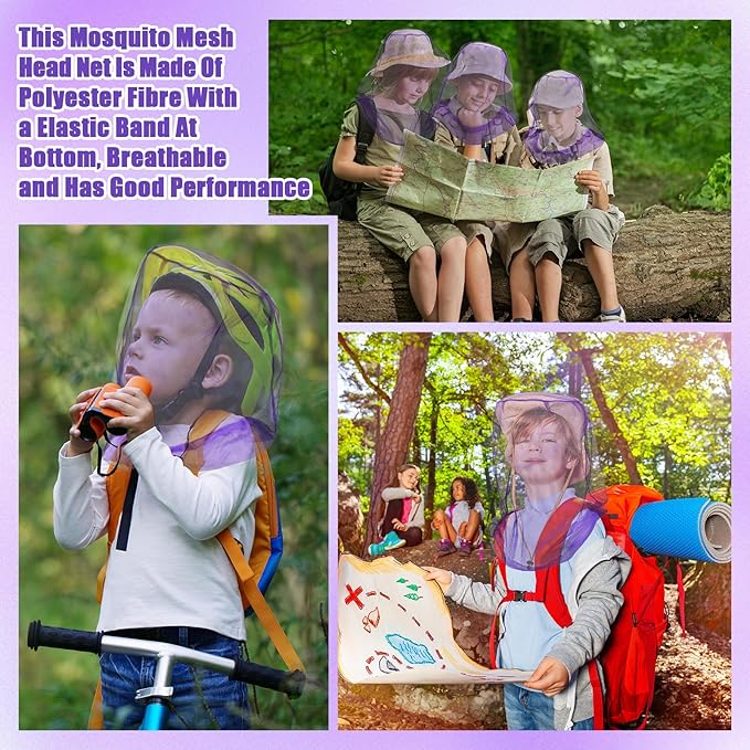 Hestya 4 Pack Mosquito Face Mesh Net Protecting Net for Outdoor Hiking Camping Climbing Mosquito Fly Insects Preventing (Purple)