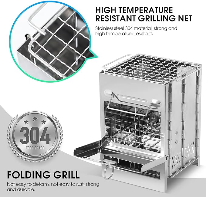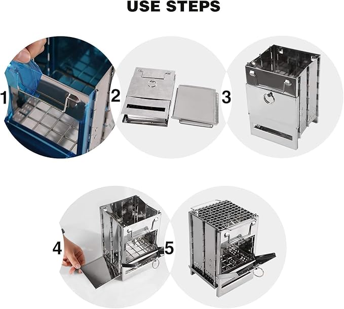 - Contains a rocket stove, a ash pan, a grill, a handbag, no need to disassemble, ready to use. Don't worry about not being able to use it after deformation.