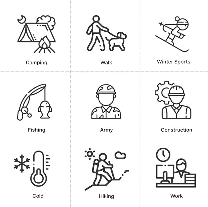 - Where to use - Convenient and suitable for working in the yard, jogging or walking with pets, outdoor sporting events, hunting and fishing, camping and hiking, dating, maintaining body temperature, mountaineering, tracking, skiing, psoriasis workers, etc.