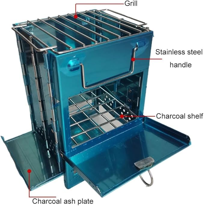 - Contains a rocket stove, a ash pan, a grill, a handbag, no need to disassemble, ready to use. Don't worry about not being able to use it after deformation.