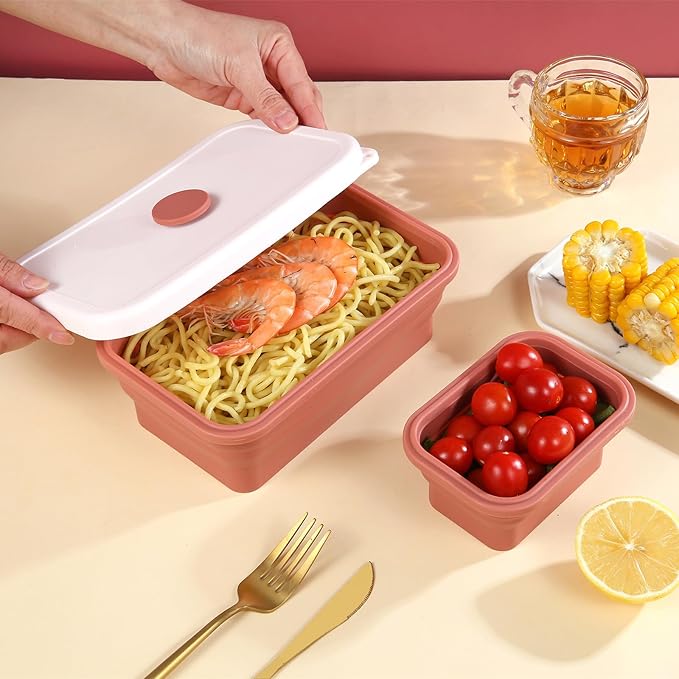 - ✅【New lid design】Maybe You have other collapsible containers and they use a different lid style where you have to push down the tabs. You will like this style better, it's more like standard plasticware, but you get collapsible.The valve on top lets you push out air and then seal, making them truly air tight.the top vent button removes for steaming
