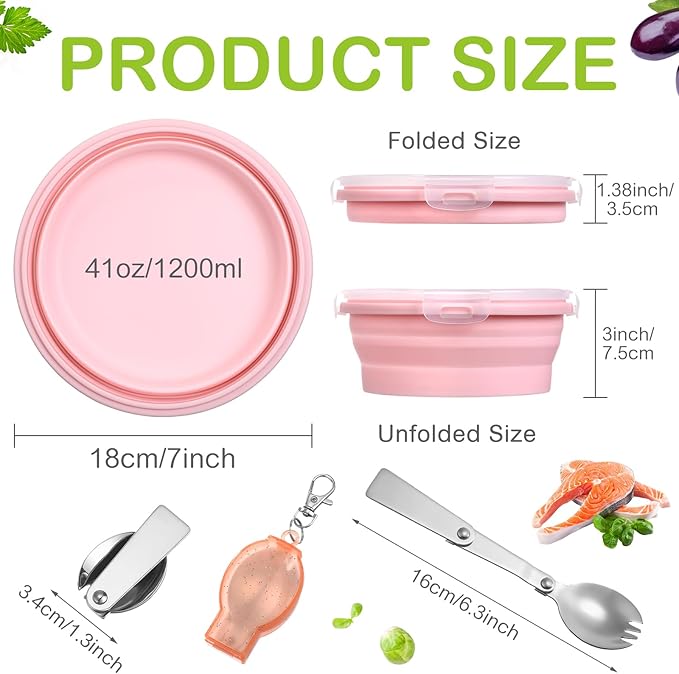 - Quality Silicone Material: crafted from quality silicone, these silicone collapsible bowls with lids are both safe and sturdy; It can be applied to hold milk powder, cereal, dry fruits, snacks, cookies, sweets, breakfast items, fruits, vegetables and more, foldable fork is made of stainless steel material, it will not bring bad taste and smell to food, which is good for health, they are easy to clean, dishwasher safe, and promote healthy use