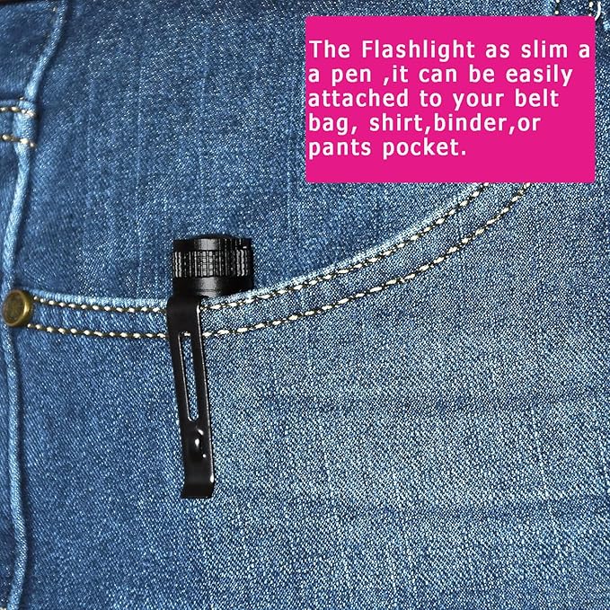 - Pocket & Compact:This mini pocket flashlight Measuring 5.25 x 0.5 x 0.5 inches Weight only 29 g, Can be easily put into your pocket or bag, convenient to take around