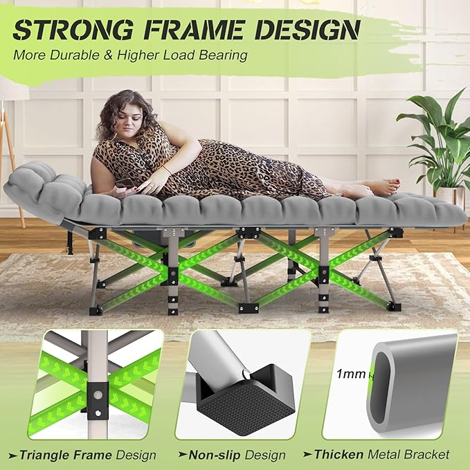 - 【TIPS】Our oversized pad is vacuum-packed, and it will be naturally fluffy within 1-3 hours after unpacking. To unfold the cot to lay flat, please refer to the manual