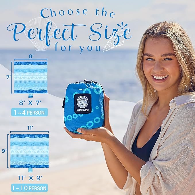 - Say goodbye to bulky sand pockets - WEKAPO beach blanket boasts a minimalist design, ditching cumbersome sand pockets for a sleek look. Four discreet corner pockets double as storage and anchor points. On breezy days, secure it easily with the included metal stakes for unwavering stability.