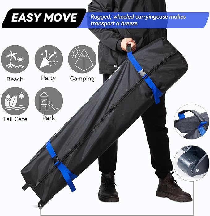 - Premium rolling storage case: The canopy can be compacted with a click of a button and easily transported with wheels and a rugged handle. This means you can take it with you wherever you go, making it perfect for outdoor fun like camping, parties, and birthdays.
