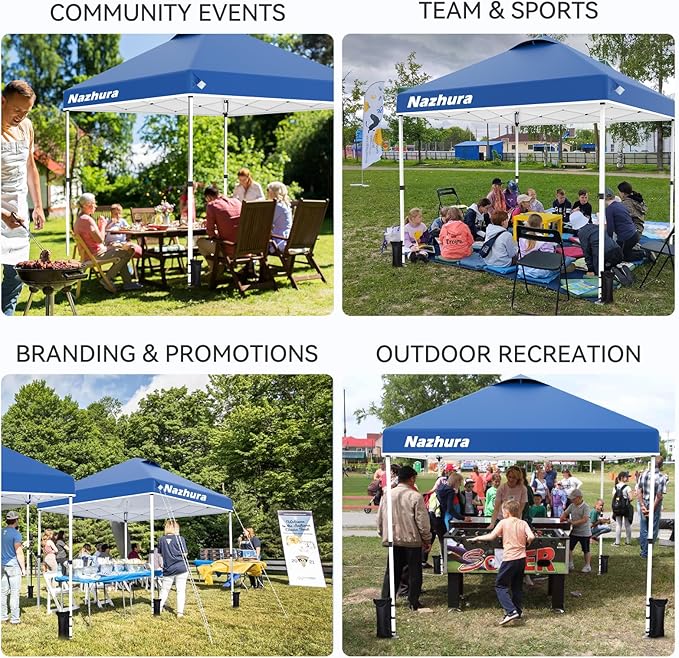 Nazhura 10' x 10' Pop Up Canopy Tent with Sand Weight Bag, Freestanding Sun Shelter for Picnic and Camping, One Person Setup and Height Adjustable (Blue)